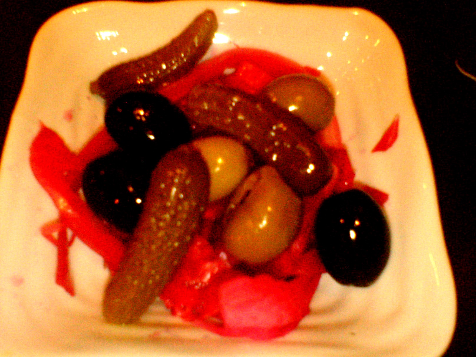 「オリーブとピクルス盛」が届く。オリーブもピクルスも好みだ。まずオリーブから・・・独特の芳香が口の中に広がる。そこにギネスをぐい・・・美味い!次にピクルスを・・・酸味が爽やかだ。ギネスをぐい・・・ふぅ。隣のカップルは話が弾んでいる。自分は本でも取り出すことにしよう。