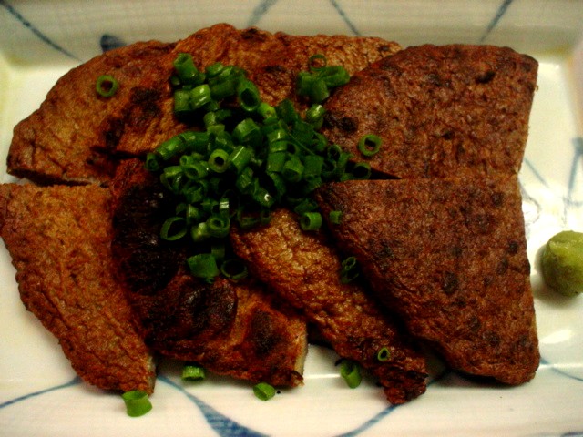 なれ寿司はあっという間に食べてしまう。で、次は・・・メニューに「ほねく(400円)」というのがある・・・。「ほねくっていうのは、さつま揚げみたいなものでしたっけ?」「そうですね。太刀魚のすり身を揚げたものですね。」「じゃあ、それもください。」「じゃあ、焼きましょうね。」