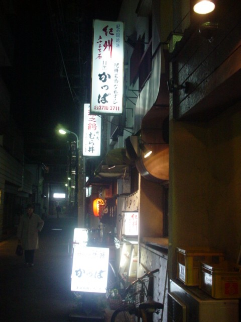 実は先月に店の前まで行ったのです。近くで芝居の稽古があり、稽古に顔を出す前に場所だけ確認したのであります。でも帰りは大人数、とても「かっぱ」さんには入れません。しかも「夢呆」さんは10時20分くらいだったのですが、すでに終わりのようで入れませんでした。偶然発見した立ちのみ「根室食堂」学芸大学店にも人数の関係で入れませんでした。「かっぱ」さんも混んでしまって次回は入れないのではと心配です。ああ、学芸大学は行きたいお店がいっぱいです。