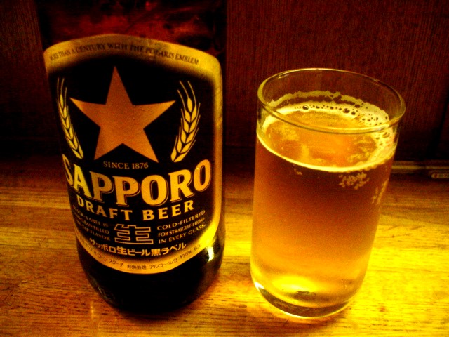 「ビール(大550円)ください。」と注文。「サッポロ、キリン・・・。」・・・銘柄を選ぶスタイルだったか。「「じゃあ、サッポロで」。ふと横を見ると、入り口近くのお客さんはキリンビールを飲んでいる。「はい。」と女将さんがまずグラスを渡してくれる。「どうも。」と受け取ると、女将さんがビール瓶を持って待っている。おお、お酌をしてくれるのか、とグラスを出す。女将さんは、一瞬「えっ?」という表情だったが、すぐに笑顔で「ようこそ」とお酌をしてくれる・・・勘違いだったか。「すみません。そういうことじゃなかったんですね。」「いえいえ。」ちょっと恥ずかしいぞ。