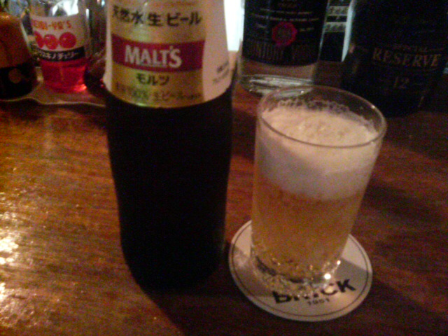 この夏は忙しかったのだが、疲れをいやすために「ブリック」にはよく通った。そこで決まって飲んだのがこのモルツの小瓶。氷で直に冷やされているので、冷蔵庫から出てくるものより冷たい。それが喉を通るときのうまさは何物にも代え難い。疲れがスーと引いていくようだった。このカウンターでビールを飲み、仕事の残りの書類を読む・・・こうして過ぎていった夏だった。