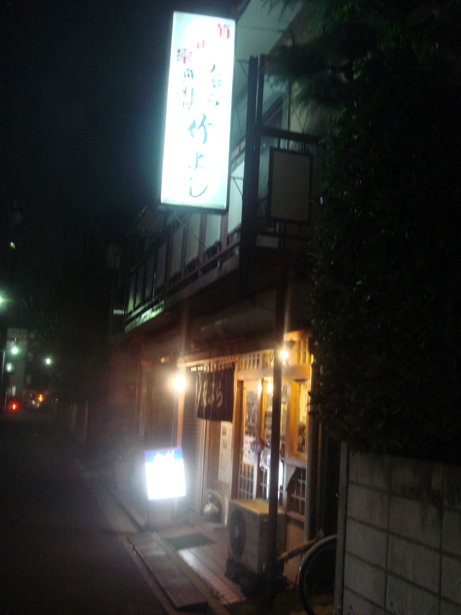 途中、急行と特急の待ち合わせがあったものの、新聞のおかげで、あっという間に都立家政に着く。この駅は階段がないので、すんなりと外に出ることができる。駅を出れば、すぐ右手に踏み切りがあり、それを渡れば2分くらいで「竹よし」だ。店は、商店街の一本次の小路にある。店の灯りが見える。何十回も通った道なので、久しぶりという感じはしない。