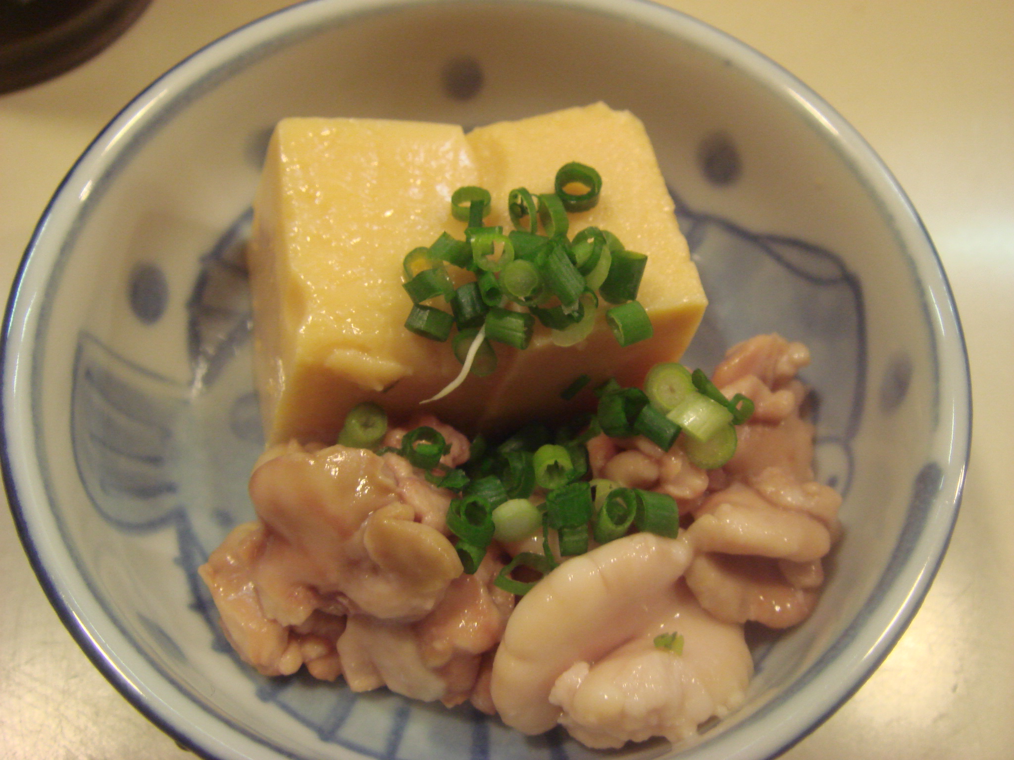 届いたキリンビール(中500円)を飲んでいると、カウンターのお客さんが「○○ちゃん、毎日、お店手伝っているの。」と、その女性に聞く(名前聞き取れず)。「週2日だけですよ。」・・・お手伝いの女性だったか。変な質問しなくてよかった。よく考えると、ありえないよなー。・・・年の差が40歳くらいありそうだもんなー・・・なんだか安心している所に、お通しが届く。「あんきも豆腐とタラの白子です。」・・・いい感じ。