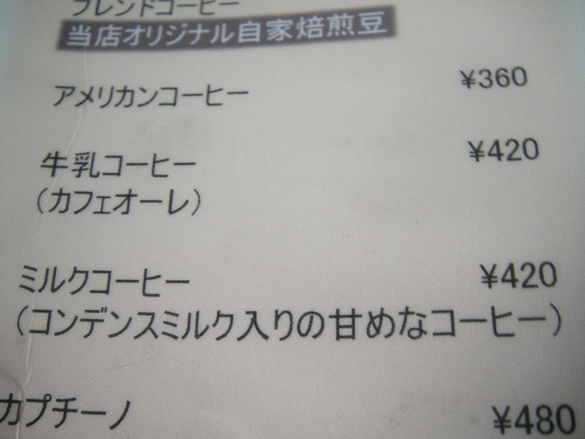 年配女性が1人で入ってくる。「本年もよろしくお願いします。」と丁寧な挨拶をしている。座ると同時に、タバコに火をつけて一服。「ミルクコーヒーね。」・・・ミルクコーヒーだ!この店にはミルクコーヒーというコンデンスミルクを入れた甘いコーヒーがある。それとは別に牛乳コーヒーというカフェオレもあってちょっとややこしい。・・・それにしても、この店にいるだけで、広島を感じることができるようだ。店の歴史とはそういうものなのだろうか。