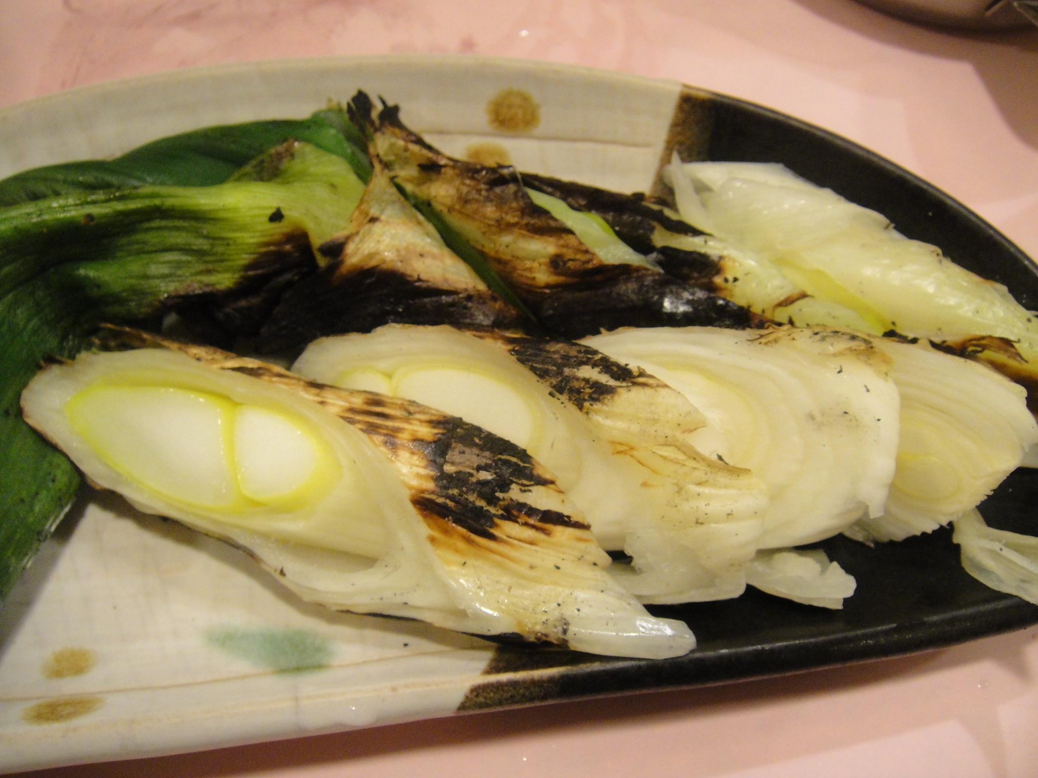 「下仁田ねぎ焼き」が届く。でかいなあ・・・表面がいい具合に焦げていかにも美味しそうだ。一口・・・ねぎの熱い汁が口の中に流れ込む。甘〜い!で噛むとシャキシャキした食感。真ん中の柔らかい部分もねぎの風味が強くて、とてもいい。美味しい!サワー、サワー!