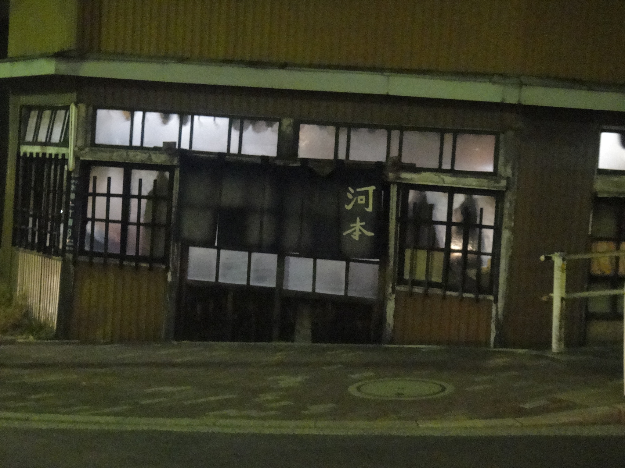 本当は午後4時に行きたかった。でも、仕事があるから仕方がない。急ぎに急いで、木場の駅に着いた時はもう6時近い。急ぎ足で橋を渡り、イトーヨーカドーの前を通り、信号が変わるのを待ちかねて横断歩道を横切って、店の前に立つ。古びた建物と暖簾。久しぶりだ。何年ぶりだろう・・・。とにかく店に入ろう。今日(23日)は土曜日。閉店時間は午後7時なのだから。