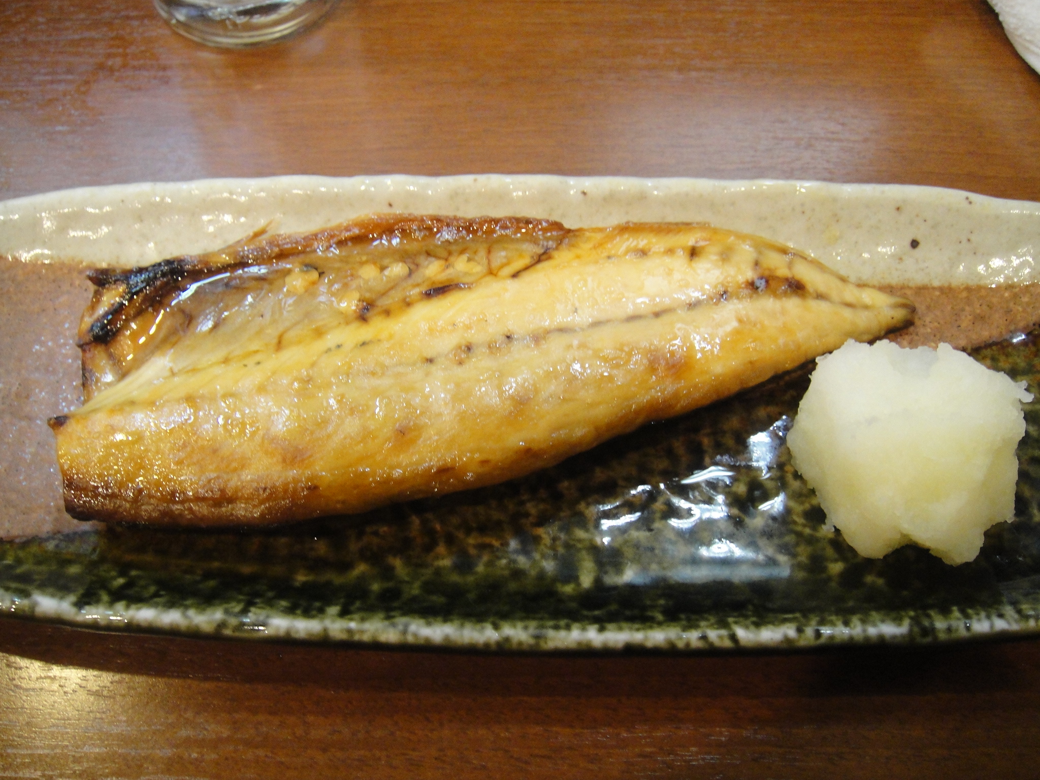 レモンサワー(350円)を注文する。何かつまみを・・・。カウンターの上の大皿に入っている煮物も美味しそうだし、ポテトサラダもイモがころっとしていて、いかにもつまみとしてよさそうだ。いろいろ迷うところだが、定食屋の焼き魚というのも美味しそうだと思い、「焼きサバ(500円)」を注文する。