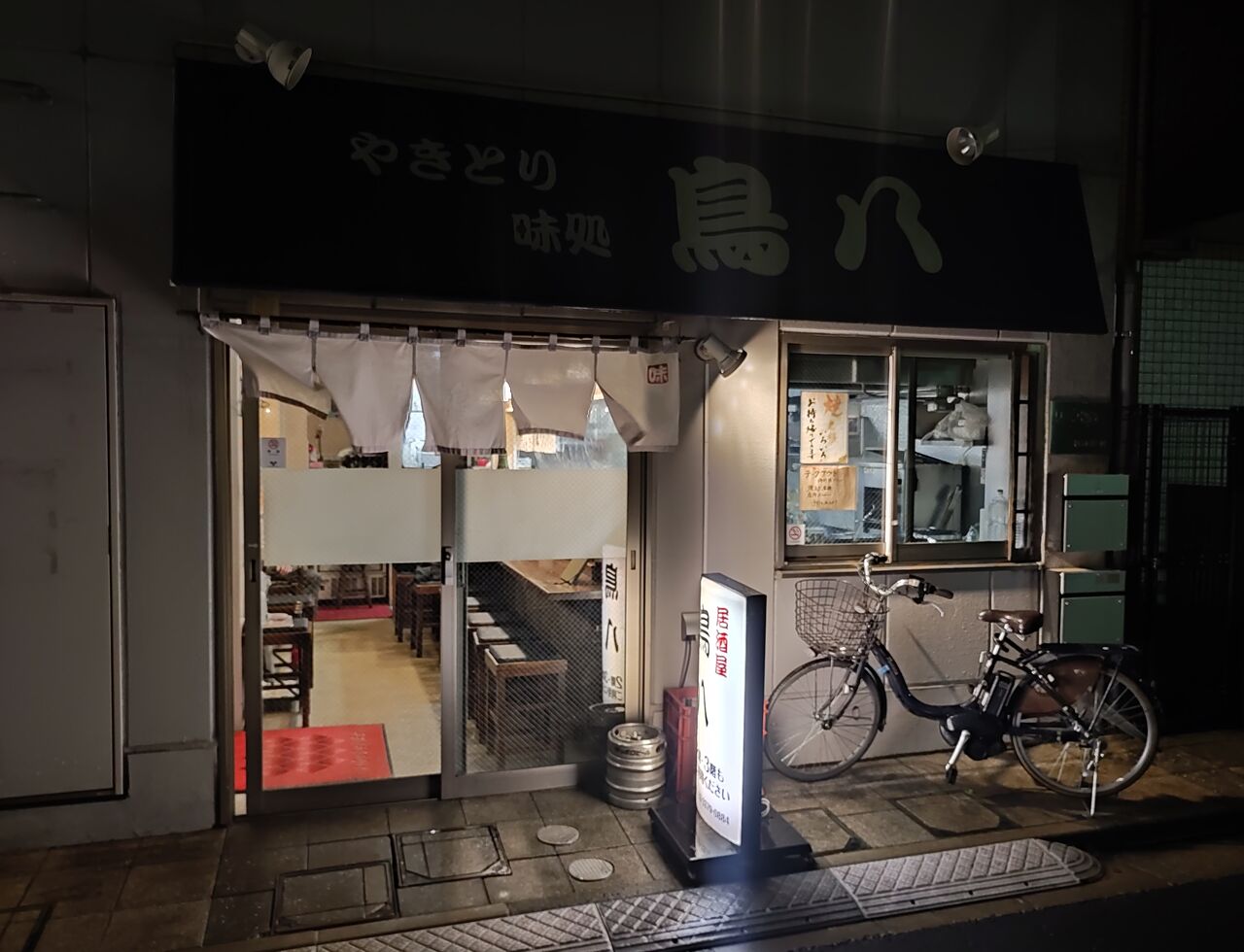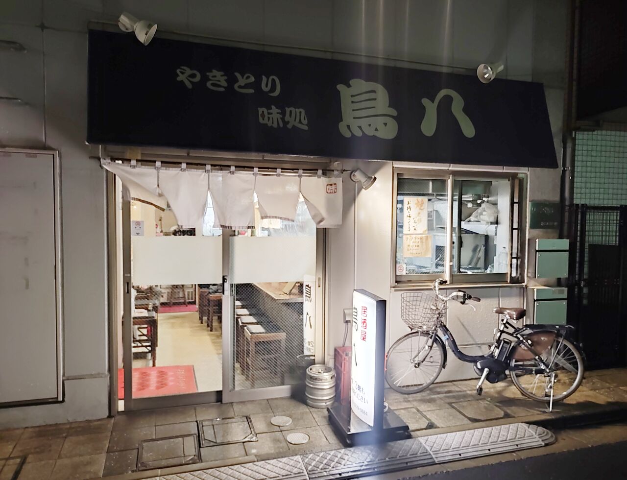 というわけで、京王新線で新宿から1駅の初台駅にやって来た。雨は幸い小降りになっている。傘をさしていない人も多い。よし!それに目指す「鳥八」は駅から30秒以内の位置にある。駅前の道を10秒、右折して10秒くらいで到着。ドアを開ける。「こんばんは」と言いながらドアを閉めようとするとびくとも動かない。あれっ、力を込めても動かない。するとテーブル席に座っていた、常連客らしい年配のおじさんがスッと立って、助けに来てくれる。「このドア、調子悪いんですよ。」「ありがとうございます。」・・・あれっ、マスターだったのか。ひさしぶりだからわからなかった・・・。