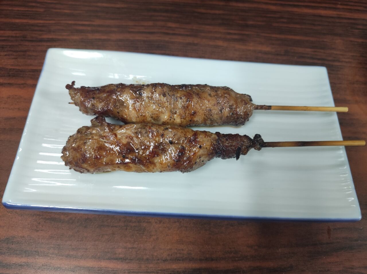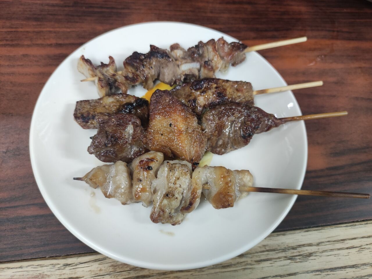 「白レバーです。」とお姉さんが、はいっという感じで皿を届けてくれる。こちらはたれ焼き。では一口・・・ぬわんですとー、この絶妙な柔らかさ・・・それでいて表面に火が通っているのでしっかりとした食べ心地・・・さらに、タレが美味い!注文してよかった。美味しい、美味しすぎる。2本あるのでそれも嬉しい。「すみません。酎ハイおかわり、お願いします。」・・・んもう、1人で盛り上がってしまう。