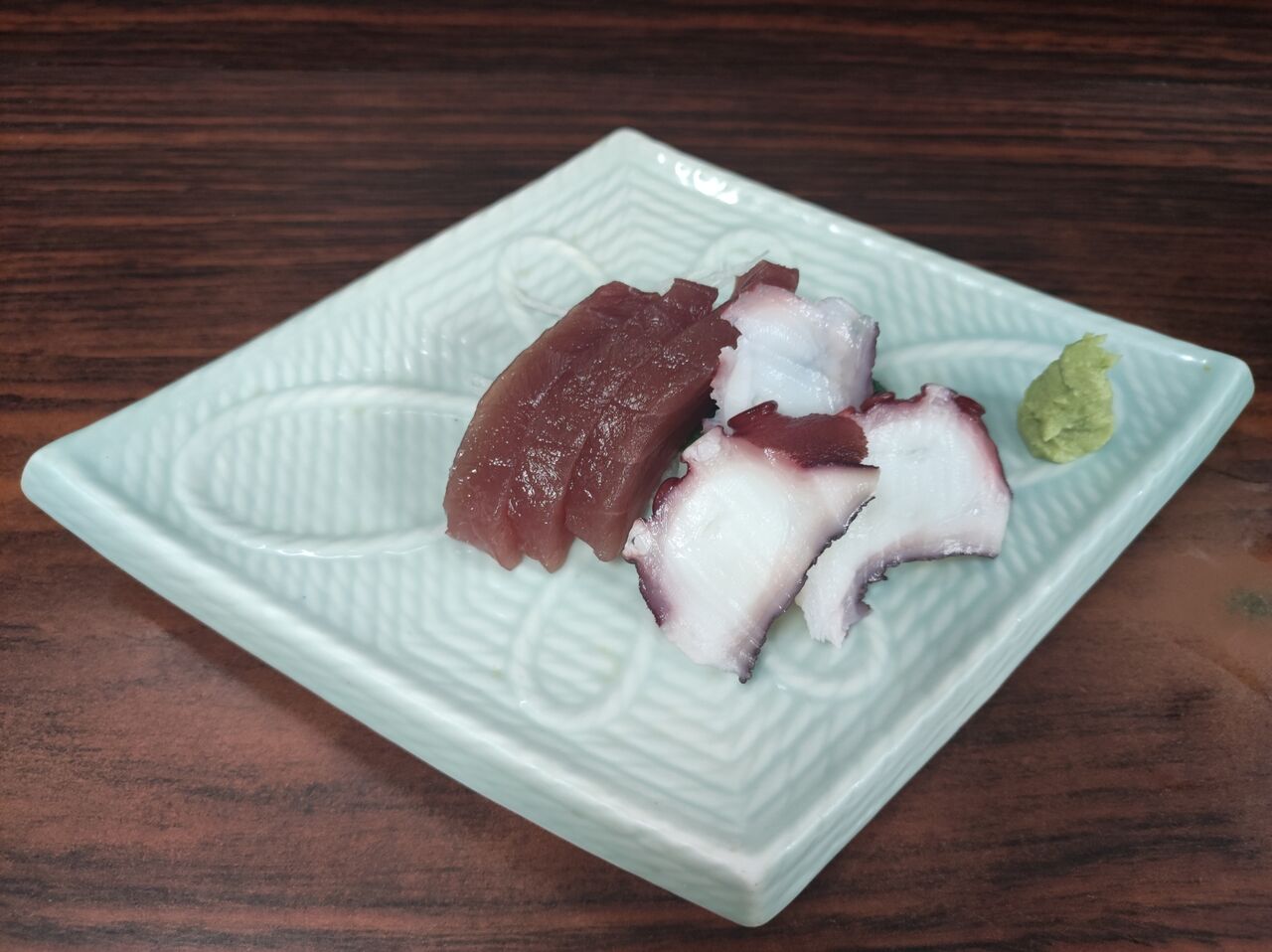 テイクアウトのお客さんが来て、かなり多くの焼き鳥を注文する。「15分後くらいにきてください。」とお姉さんがお客さんに告げている。この辺りは住宅街になっているのでこういうお客さんも多いのだろう。「まぐろとタコのお刺身」が届く。それぞれ3切れずつ。値段からしても妥当を思われる。マグロから一口・・・疲れた身体に沁みる美味さ。やっぱりマグロの刺身って美味しいよなー、と思わせる味。タコも一口・・・こちらはさっぱりとして、また違う美味さ。ちょうどいいつまみなのだ。いいねー。