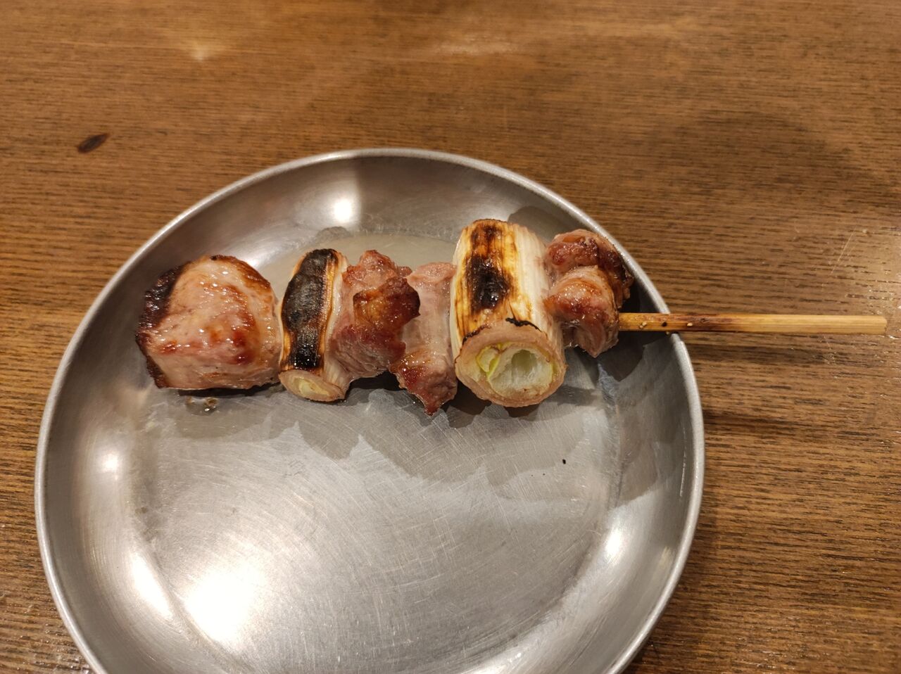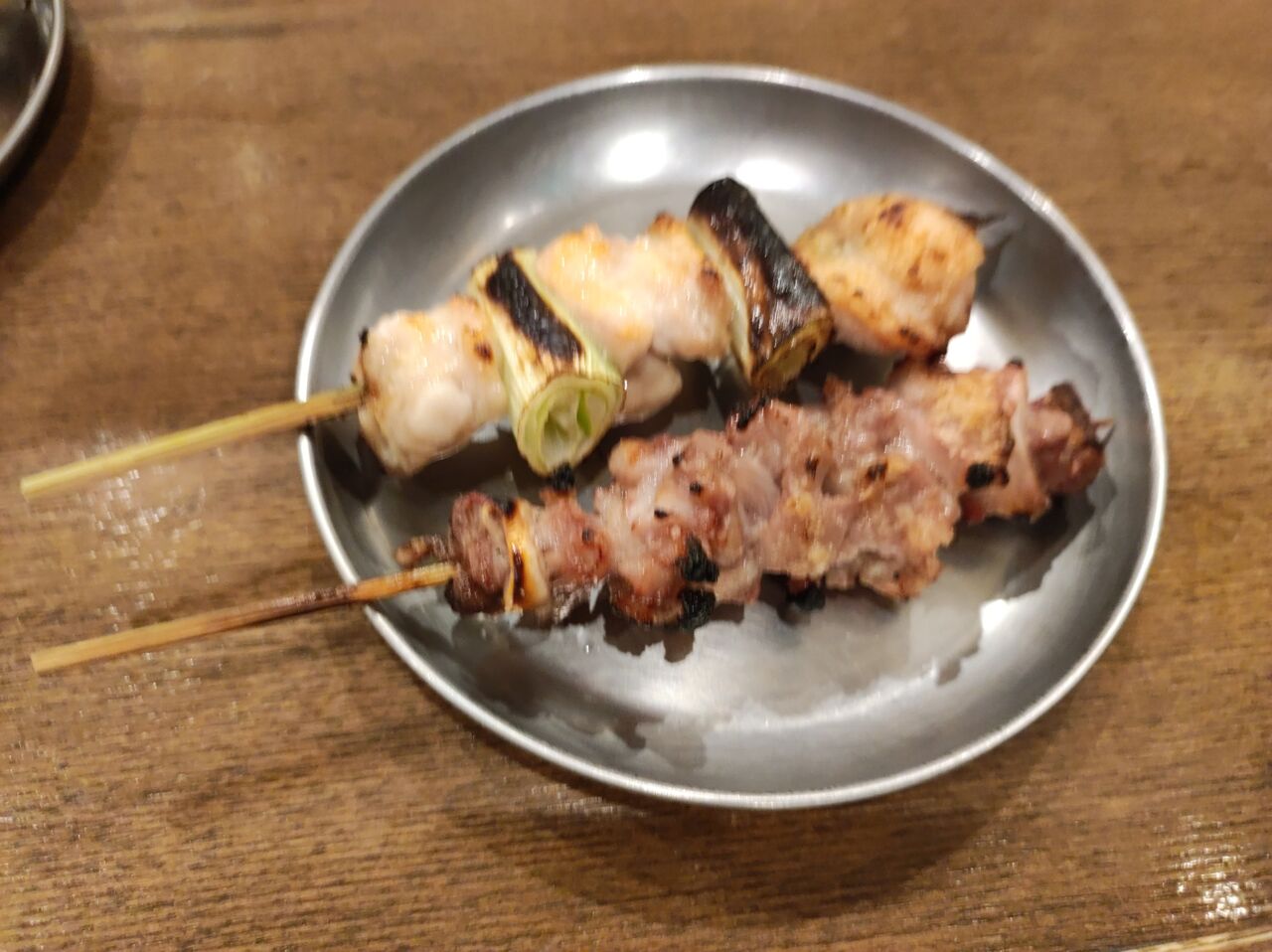 生ビールが届く。では、一口・・・ざわざわしていた気持ちが、すぅーと収まっていく・・・ということはないが、美味しいには違いない。沁みるよなー、流石に今日は。さて、もつ焼きでも食べようかな。「すみません。レバー、カシラ、ナンコツ、ハラミ(1本120円)を塩で。あと、焼き鳥の手羽ねぎ(120円)も塩でお願いします。」と注文する。それをお姉さんがメモして、焼き台のお兄さんに渡しながら「5本でーす。」と伝える。ふむふむ。