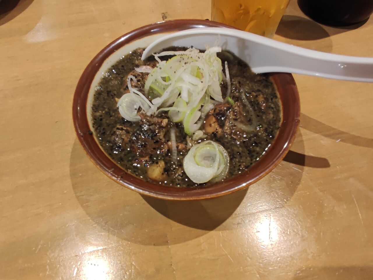 「黒もつ煮込みです。」とカウンター越しにお兄さんが届けてくれる。確かに黒い。