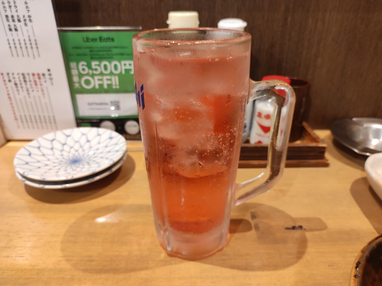 では、次の飲み物を。クエン酸サワーにしようかなー。かつて、野方の環七沿いに「つがる屋」というおでん屋があった。まるで屋台のおでん屋のような雰囲気で、おでんももちろん絶品、ママさんも最高に面白い人で、大好きな店だった。その店で飲んでいたのがクエン酸サワー。懐かしいなあー、おでんにクエン酸サワー・・・でも、この店のおでんには合わないかも。同じ酸味が効いた飲み物でも、「バイスサワー」の方がいいかなあー。というわけで、「すみません。バイスサワー(390円)をお願いします。」と注文する。