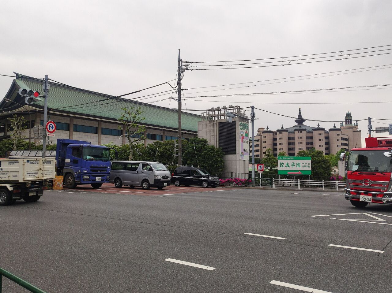 雨が降り出したら逃げ道がないな、と心配しながら歩く。1つ目の信号が遠い。佼成学園という学校が見えてくる。なるほど、この道は渋谷から阿佐ヶ谷へ向かうバスで通ったことがあるな、と思い出す。更に歩くと、立正佼成会大聖堂が威容を現す。でっかい建物だなあ。とするとその奥にある、これまたでっかい講堂みたいなのは、高校吹奏楽の甲子園と言われた普門館というわけか・・・。