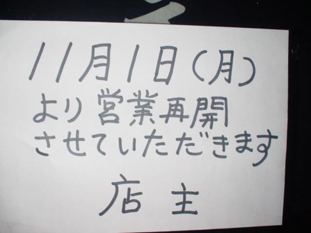 貼り紙には、確かに「営業再開」の文字が・・・。